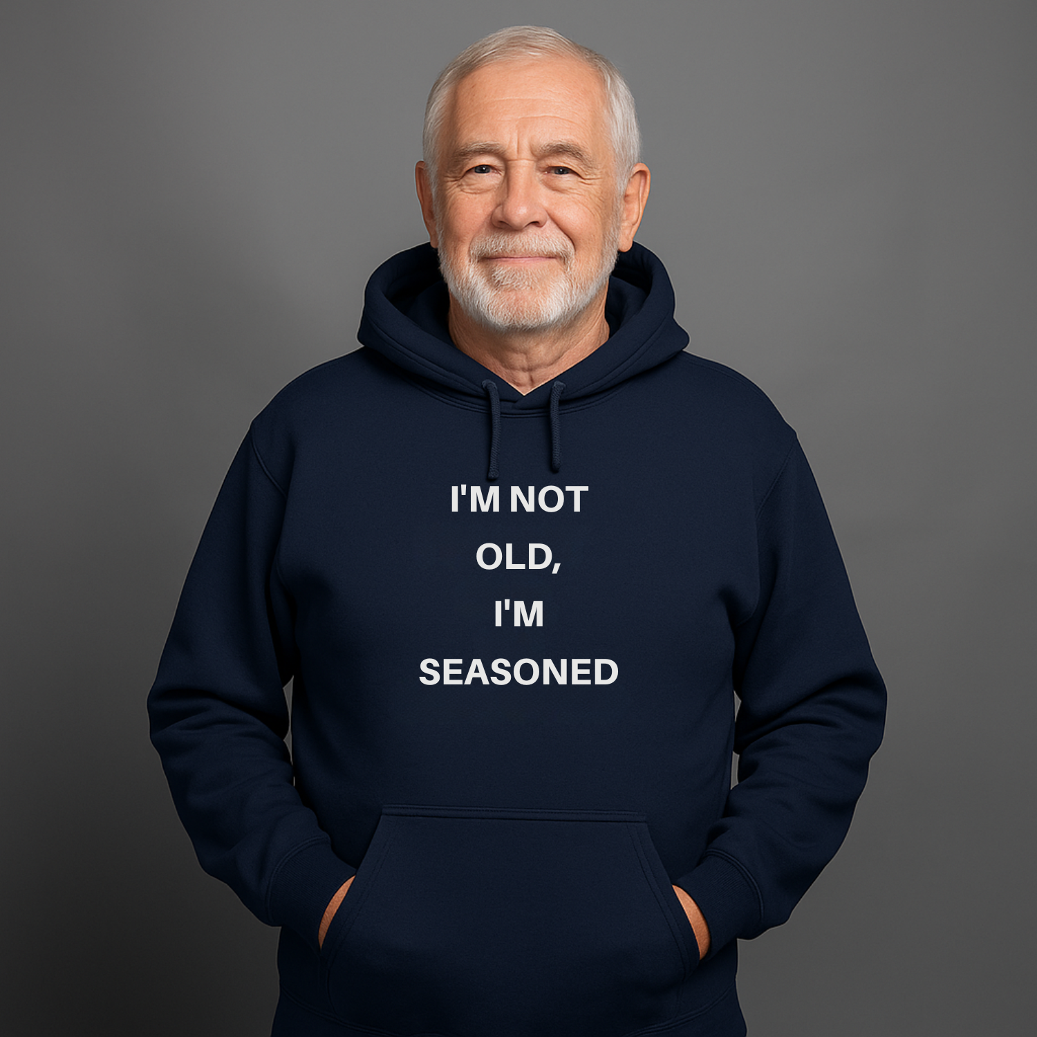 Comfortable, confident, and full of personality. The “I’m Not Old, I’m Seasoned” Hoodie reminds retirees that getting older just means getting better.