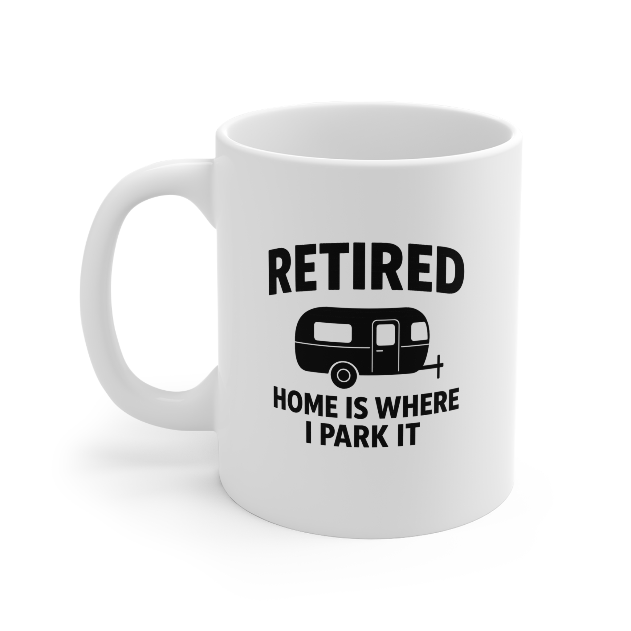 Start your day with a smile. This 11oz ceramic mug features a bold camper graphic and the phrase “Retired — Home Is Where I Park It.” Microwave- and dishwasher-safe, it’s the perfect retirement, RV, or camper-life gift.