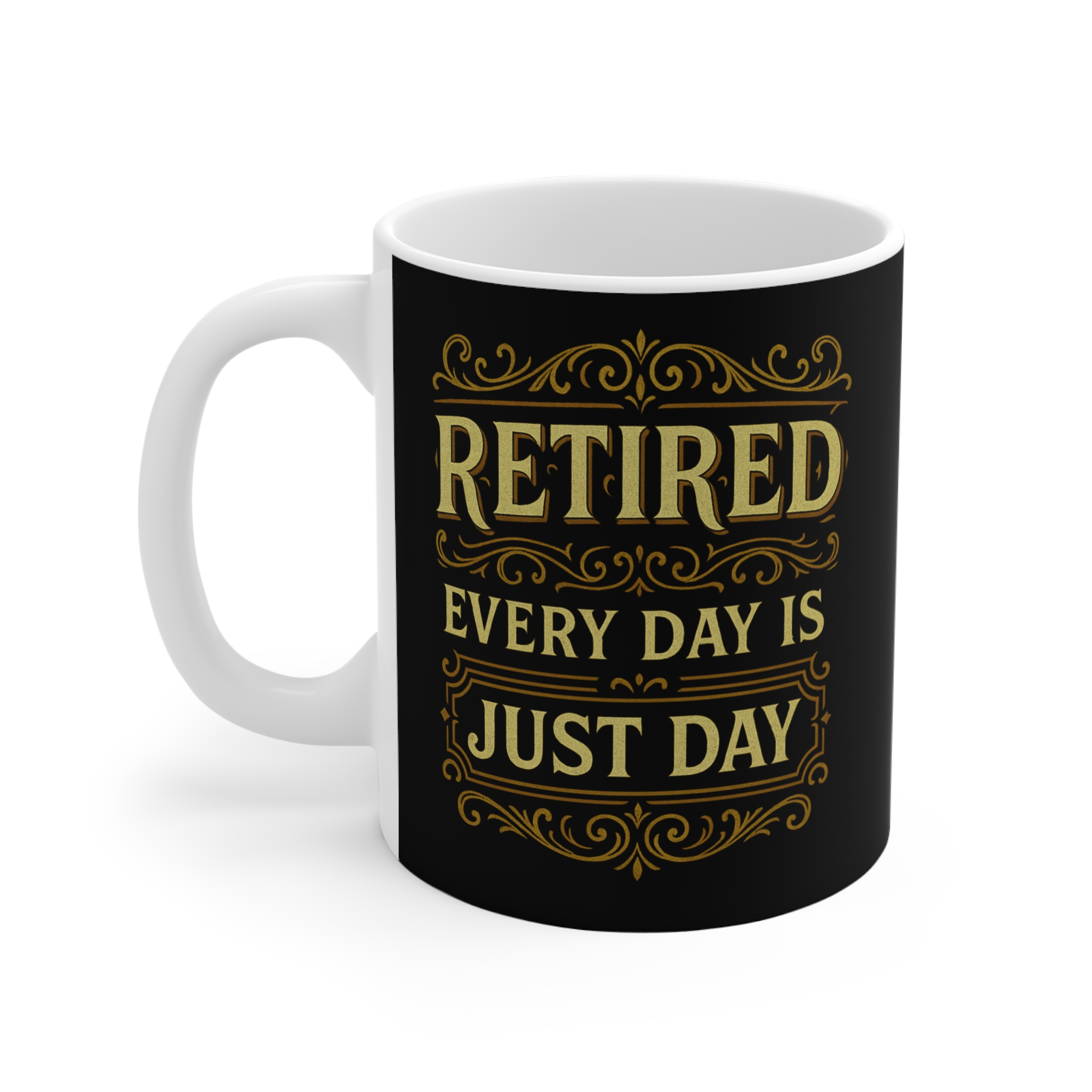 Celebrate life with no schedules and all smiles! The “Every Day Is Just Day” mug is a humorous nod to the retired lifestyle — where every morning feels like Saturday.