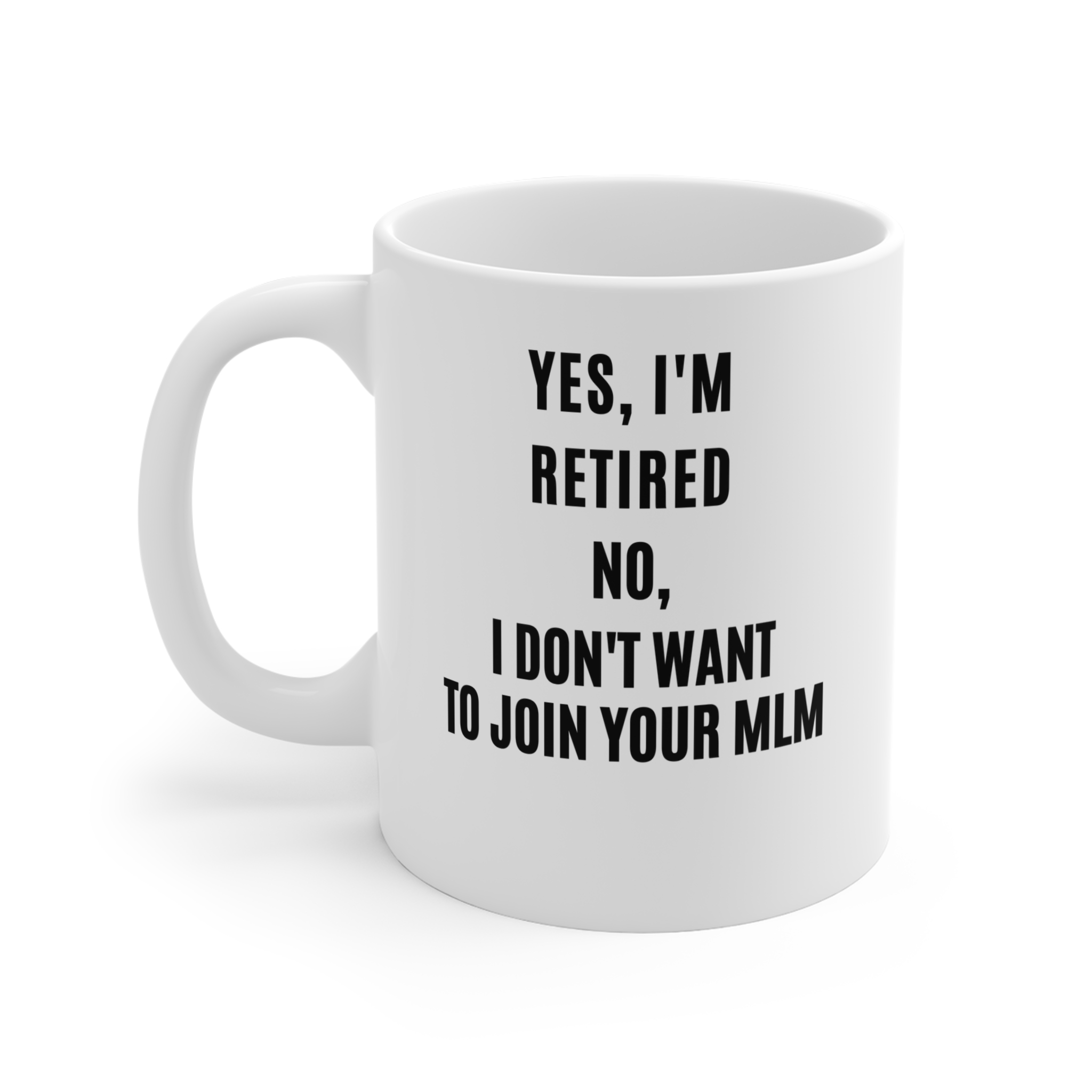 Start your morning with laughter! This “Yes, I’m Retired. No, I Don’t Want to Join Your MLM” mug is the perfect way to enjoy coffee while setting boundaries with humor.