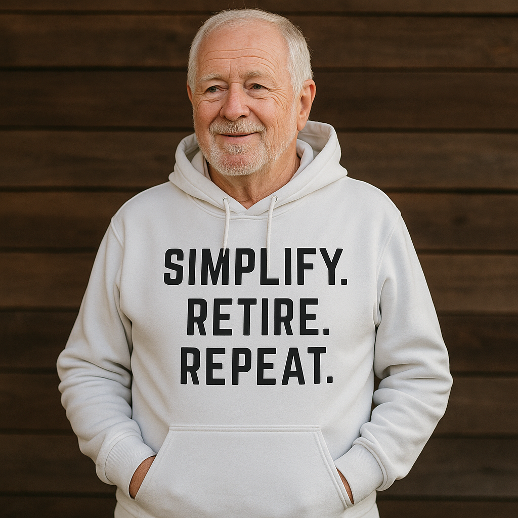 Soft, simple, and made for retirees who know what matters. The “Simplify. Retire. Repeat.” Hoodie keeps comfort high and stress low — your go-to for relaxed living.