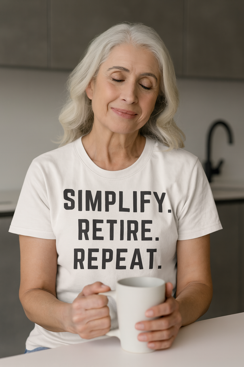 Less stress. More living. The “Simplify. Retire. Repeat.” tee says it all — simple, comfortable, and perfect for those who’ve mastered the art of slowing down. A stylish reminder that life’s better uncomplicated.