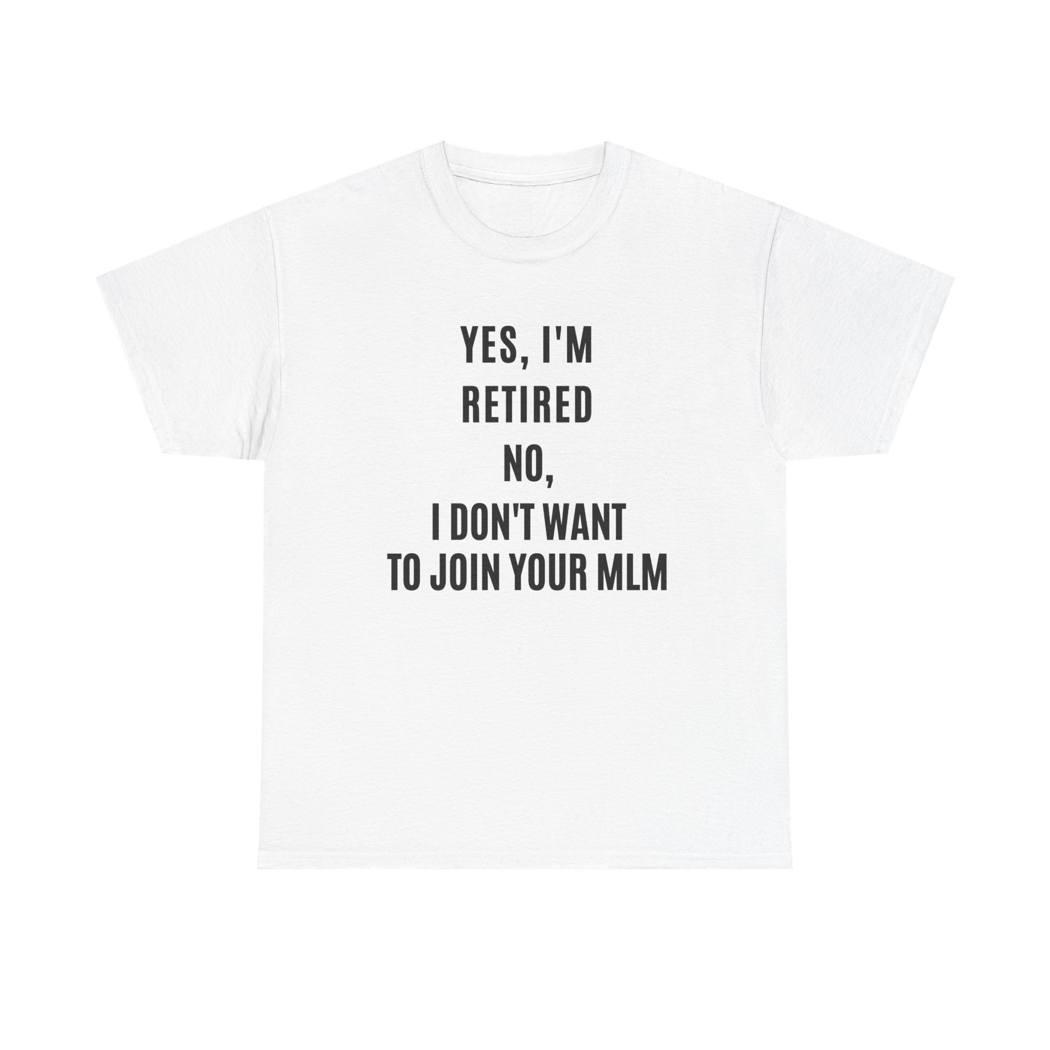 Say it loud and clear — retirement means freedom, not recruitment! This funny “Yes, I’m Retired – No, I Don’t Want to Join Your MLM” tee is perfect for retirees who’ve earned their peace (and a good laugh).